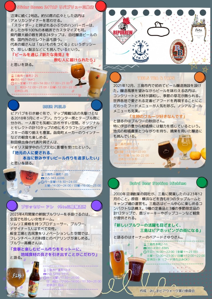 三島の街中には、クラフトビールを楽しめるお店がたくさん!醸造所やその直営店など、いろんなお店がギュッと点在しているので、ぜひチェックして楽しんでくださいね^^