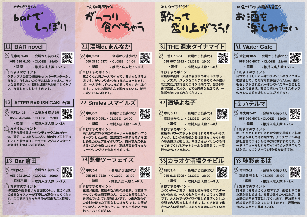 らへん飲食店情報#2 三島らへんスタッフの独断と偏見による(笑)、三島の飲食店情報です!以下のバナーをクリックしてご覧ください。らへん交流会の後や、2次会の後などにも行けるお店もありますので、ぜひこちらのリストでチェック!ください^ ^三島の路地裏の個性的なお店のトリコになっちゃうこと、間違いなしです!